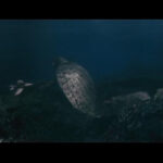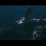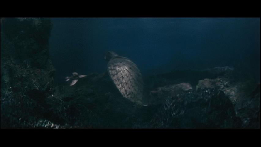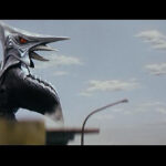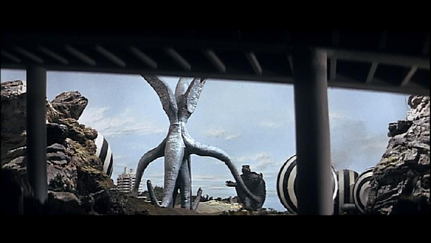 怪獣が奥にいて、手前に何か置いてあるようなアングル。
