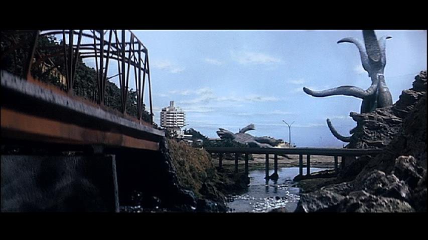 この辺もそうですよね。人間が遠くの怪獣の戦いを