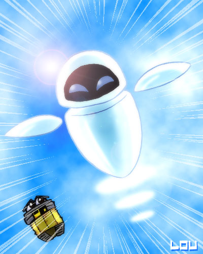 「WALL-E」より、イヴとウォーリー。カートゥーンネットワーク系じゃないですけど、まあ勘弁してください。 イヴは単純なデザインでありながら、キャラクターの動きがすごい面白いのがいいですよね。