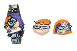 原宿は「スパイラル」というお店にて入手したデクスターの腕時計。画像一番左が腕時計本体で、デクスターの部分が開くようになっている。またデクスターは交換できるようになっていて、右の二つの顔がその交換用のパーツである。