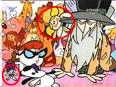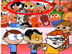 赤丸で囲ってある所、よ~く見ると、パワーパフガールズの3人がいます。ただし色とかが微妙に違ってますね。そもそも「パワパフ」は「デクスター」の後の作品なので、本来「デクスター」に「パワパフ」が出てくるはずがないと思っていたんですが、色々と調べた結果、どうもそうでもないらしい。