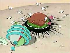 すったもんだの末、宇宙ニワトリは自分が放ったレーザービームでローストチキンになってしまう。