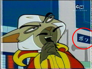 スポンジボブファンの娘に萌え~ 今日のアトミック・ベティ。 ところで以前からマキシマス基地の背景に、日本語が描かれているって指摘があったけど、