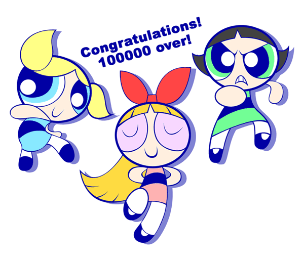 YOMIさんよりいただきました「100000ヒット」記念イラストです。ガールズ達の独特の色使いがたまりませんねぇ。 どうもありがとうございました!