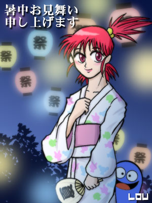「夏」って事で、浴衣のフランキー姐さんを描いてみましたー。なんか「日本の夏」って感じで、いーですなー。