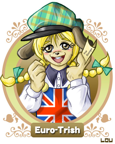 本当のユーロトリッシュにはこんな犬耳とか無いんですが、でもあった方がそれらしいだろう、という事でつけてみました。しかしこの子は犬なんだろうか、どうなんだ。