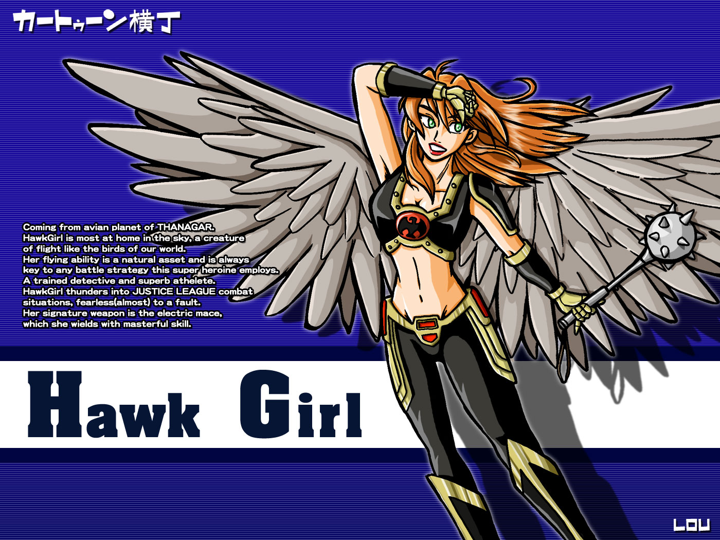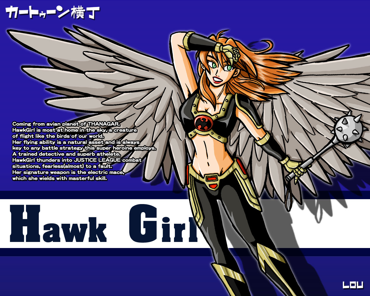 …というわけで「酉年」にちなんで、「ジャスティスリーグ」のホークガール姐さんの壁紙であります(いや厳密には「酉年」ってのは「鶏」であって「鷹」では無いんですが、まあいいでしょう!)。