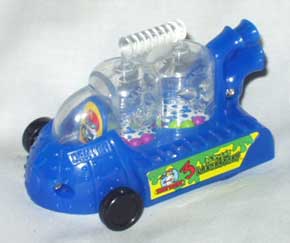 高円寺のトイショップでゲットしました。デクスターの車です。ちょっとわかりにくいかも知れませんが、車を走らせると透明ケースの中のBB弾がポンポンはねるという仕組です。でもタイヤが固くって…。