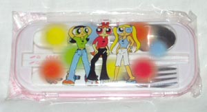 わいりーコヨーテさんから情報を得て購入してもらった、「パワーパフガールズ」のパチモンの箸箱。八頭身のガールズが妙にキモい(笑)。