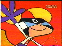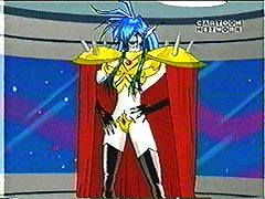 下段はデクスターロボを呼ぶ時のデクスターなんでありますが、実はこのシーン「科学忍者隊ガッチャマン」の変身シーンのパロディ。「バードゴー!」てやつなんですよ、これが。